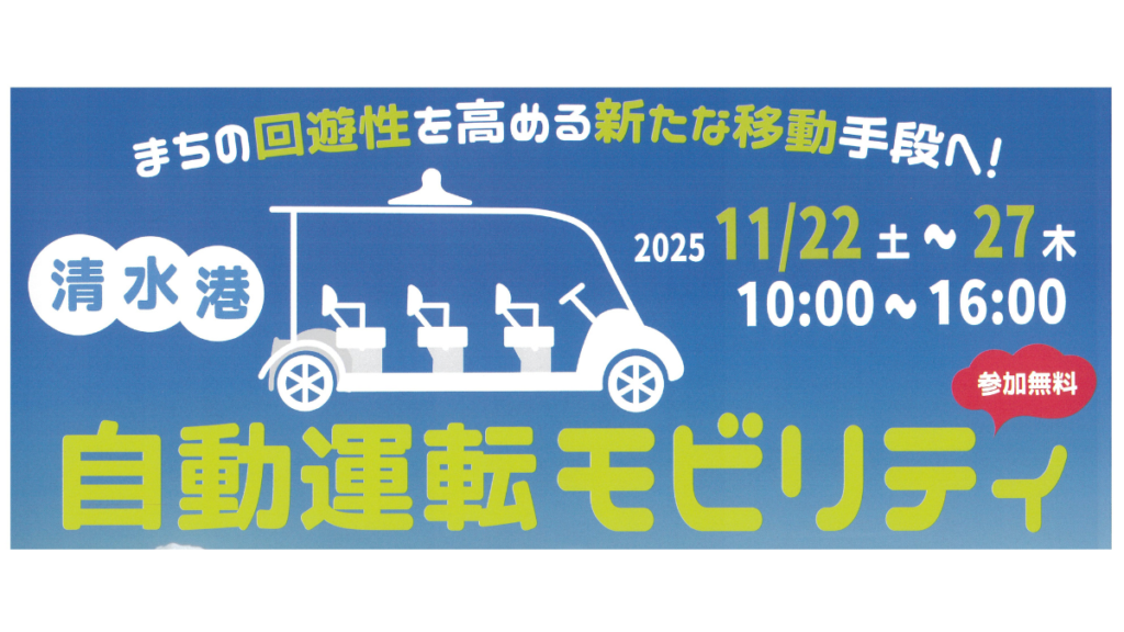 終了しました 日の出エリアにおける自動運転サービスの実装を目指した走行実証を行います 令和7年11月22日(土)~27日(木)の計6日間、日の出エリアの清水港港湾施設内および公道において、 自動運転レベル2による走行実証 […]